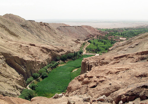 Bezklik Grottoes It is located 50 kilometers to the east of Turfan City . “Bezeklik”means “a place with beautiful decoration”. There are 83 numbered caves; among them 40 preserved murals totaling 1200 square meters. These caves are first excavated in Qu`s Gaochang period. The exising caves were reconstructed or newly extended by Uighurian people. In some caves one can find that Buddhish murals are painted on Manichean murals. Themes of the murals are mainly the stories about causes.