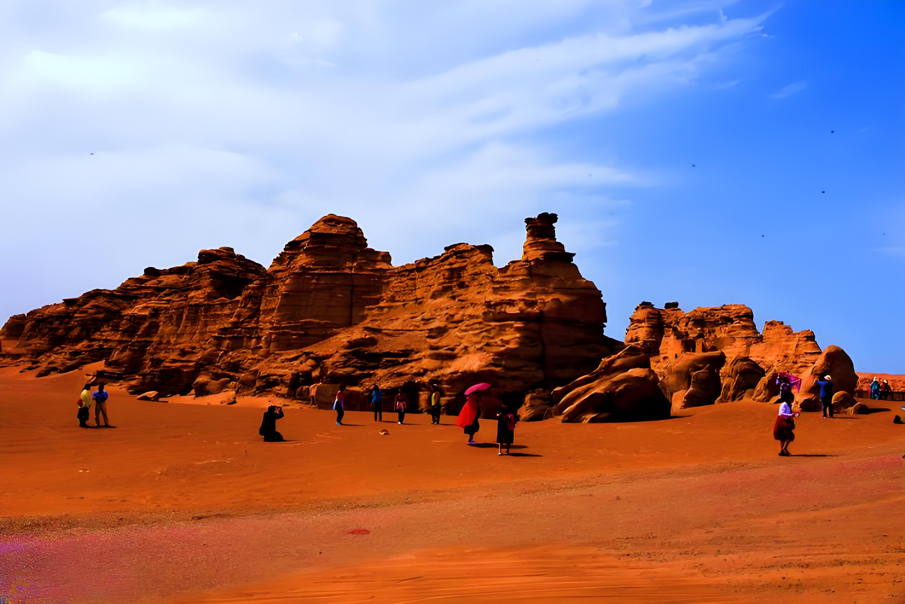 And then have lunch upon arrival in Hami, and in the afternoon focus on the ghost city Hami Ghost Castle lies in the southwest Gobi.about 30 kilometers away from Wubao village of Hami.Yadan spectacle in Hami emerged from the black sand wave.Therefore,it is like a mysterious city in the black sea.It has been developed into Yadan ecological garden.Centered at one of the old station,it includes four scenic spots:east,south,west,and north cities.