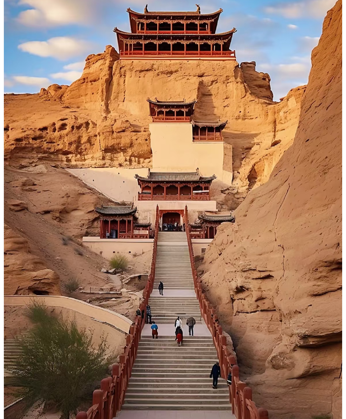 After arriving in Dunhuang in the morning. you'll head to the world-renowned Mogao Grottoes, where you can admire the exquisite murals and sculptures under the guidance of a professional guide. Immerse yourself in the charm of thousand-year-old Buddhist art and learn about the history and culture of the Silk Road. Apart from that, you will visit the Mingsha Mountains. Under the glow of the setting sun, you can ride a camel through the desert, listening to the rhythmic sound of camel bells, or climb the sand dunes barefoot, feeling the fine sand slip through your fingers.