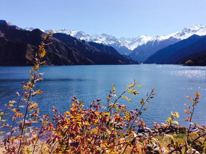 Be immersed in the picturesque Heavenly Lake, which is surrounded by the snow mountains, blooming wildflowers and evergreen pine trees.