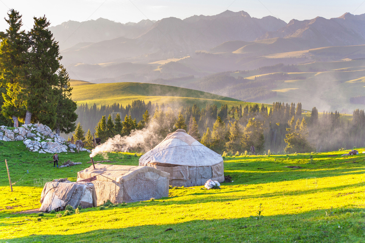 Today's tour starts with the nice buffet in the hotel, then we will drive you to see the vast Karajun Prairie which is as beautiful as in a poem or a picture. There are springs densely distributed here. It is also an ideal place for people of the pasture to exchange materials and hold cultural activities. Karajun, in Kazak, means "a dark wilderness". For generations, people on the grassland have lived a simple nomadic life. The traditional lifestyle exudes a unique charm.