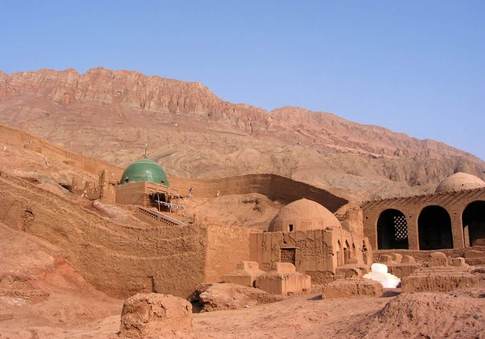 The caves lies 65 kilometers to the east of the city of Turfan and are constructed or dug in eastern and western cliffs in Toyok Valley . Among more than 40 caves, there are 10 preserving murals. They are considered to be the earliest caves in Turfan, first excavated in the Wei,Jin ,and S outhern & Northern Dynasties. The latest ones were dug in the Tang Dynasty. Most of them are square in shape and have a center pillal. Murals are mostly damaged, but unique in style. They are valuable Buddhish cultural materials of Turfan and the Western Regions. Now it is listed as a major cultural site protected by autonomous region.