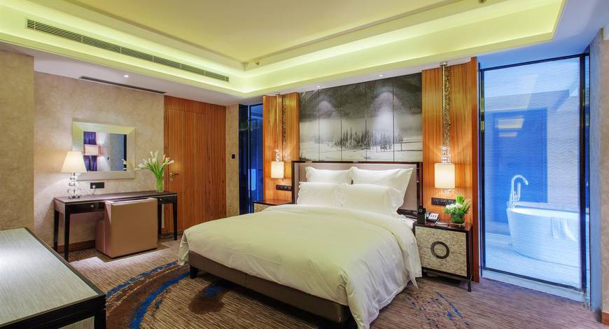The magnificent lobby is richly decorated with Xinjiang flavor. The Chinese work of art honors the minority nationalities, picturing their act of singing and dancing that depicts the hospitality, generosity and high spirit of the region.