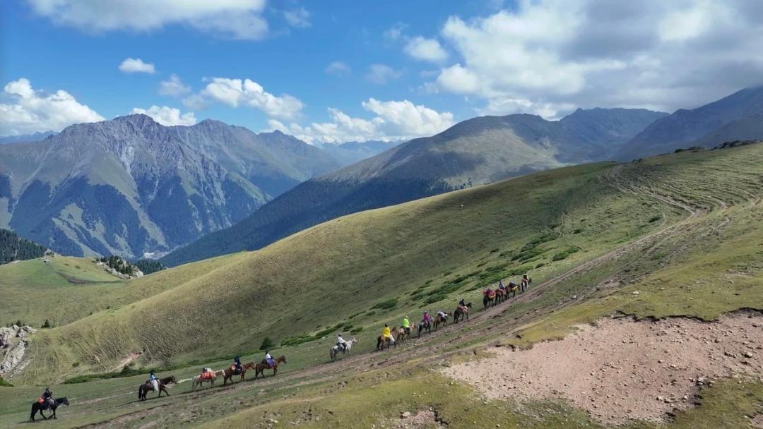 After a hearty breakfast, you'll embark on the longest horseback ride of the tour—30km through Xiata's "staircase" terrain. Ascend two vast grassland platforms and conquer a 3,500m mountain pass, gaining 1,500m in elevation. At the second platform, marvel at endless herds of horses, cattle, and sheep grazing across lush meadows. This Kazakh herders' highest-altitude summer pasture, nestled among towering peaks, feels like a hidden Eden frozen in time.
