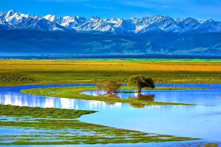 Get up early and start your jouenry around 8:30, today's first destination is Zhaosu Wetland Park, The wetland park has many biological species, such as some rare plants and protected animals. Hiking in the park 2-3 hours, to see hordes of horses galloping like arrows in the river. Every day at noon there will be a large number of horses bath in the river, chasing each other, splashing waves.